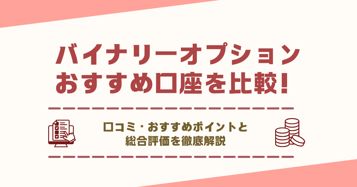 本記事では、バイナリーオプションのおすすめ口座を紹介する。口座の選び方やトレードスタイル別のおすすめ口座についても紹介するため、バイナリーオプションを始める際の参考にしていただきたい。